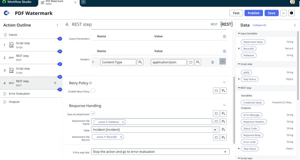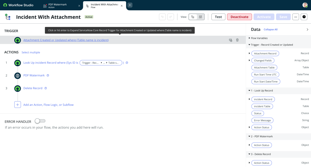 1. Create a Flow Action PDF Watermark in Flow designer / Workflow Studio.